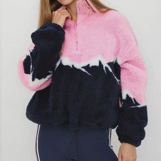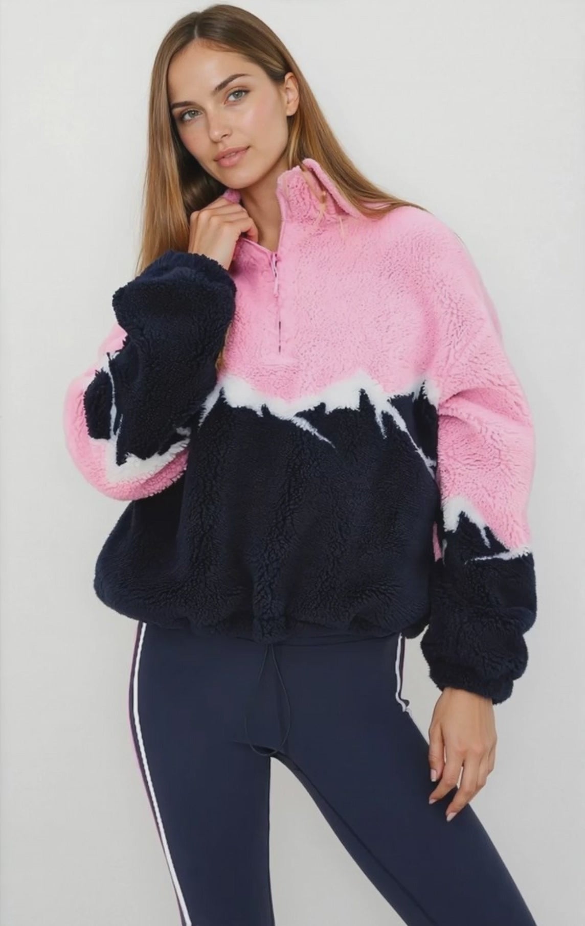 Soft and cozy sherpa fabric for ultimate warmth. Half-zip and high collar for adjustable comfort. Elastic cuffs and adjustable drawcord hem. Front pockets for the win.