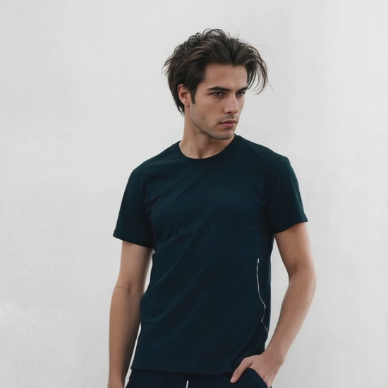 Soft, light weight, and sweat-wicking. Great for working out or just throwing on. Features an athletic fit that hugs the chest and reflective back and side stripes.