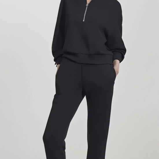 Slim, tailored fit with cuffed hem. Elasticated waistband, internal drawcord, and side and back pockets. Made in Varley's signature DoubleSoft fabric.