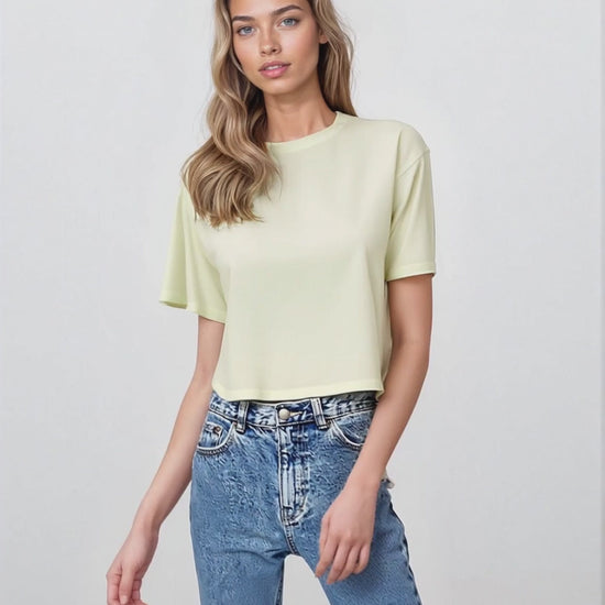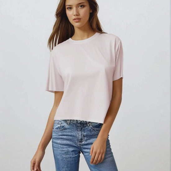 This essential cropped tee has a crewneck, relaxed fit, and super soft feel. Made with Stateside's 100% Supima cotton Cloud Jersey.