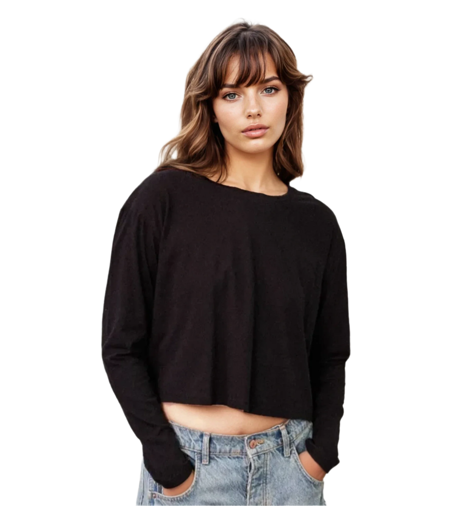 The essential long sleeve to grab in every color. Relaxed fit and super soft feel. Hits right at the waist for a perfect fit with jeans or leggings. 100% supima cotton cloud jersey.